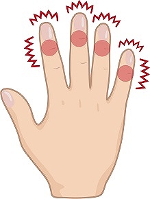 指の怪我や繰り返しの微小損傷が引き金となる場合。
