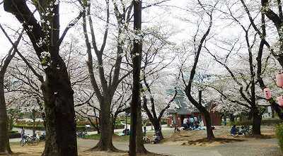 公園内には約300本のソメイヨシノが植えられており、毎年3月下旬から4月上旬にかけて満開を迎えます。