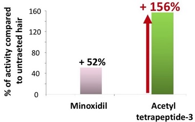 下記のグラフは、キャピキシルの主成分であるアセチルテトラペプチド-3と、